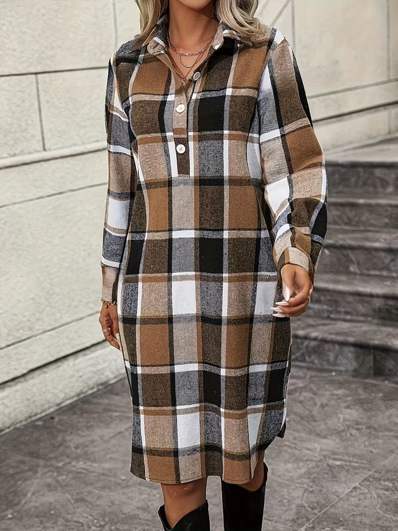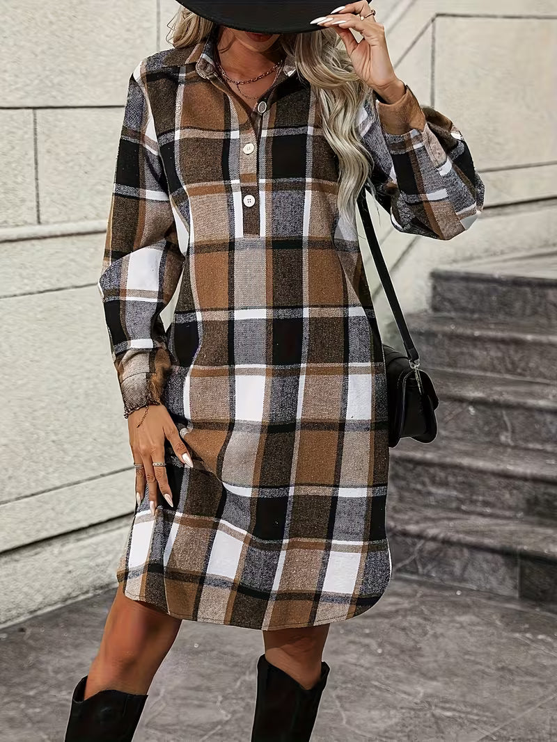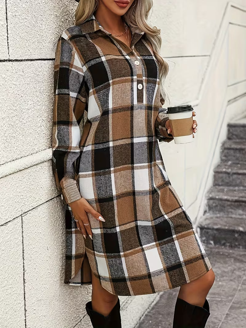 Du vill ha ett plagg som ger dig stil utan ansträngning. Denna rutiga skjortklänning formar en smickrande silhuett, ger bekväm passform och låter dig känna dig självsäker hela dagen.