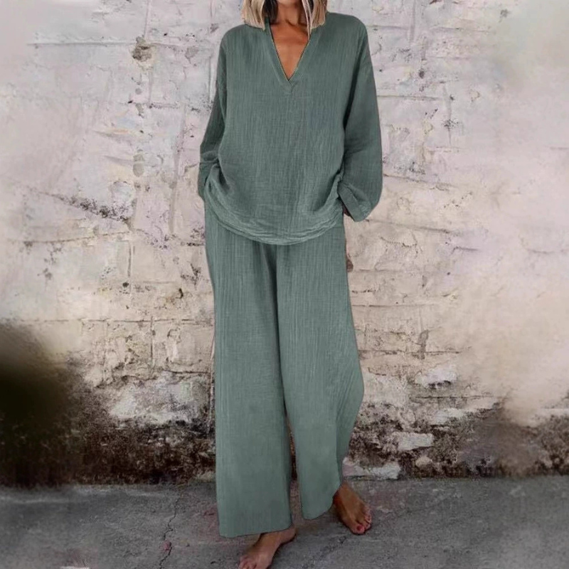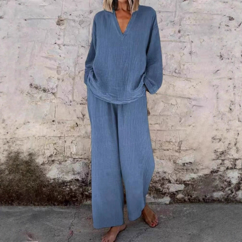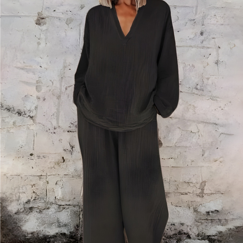 Du vill känna dig avslappnad men ändå stilfull varje dag.Detta mjuka och luftiga set ger dig bekväm rörelsefrihet, en lös passform och en enkel elegant stil som passar perfekt för vardag.
