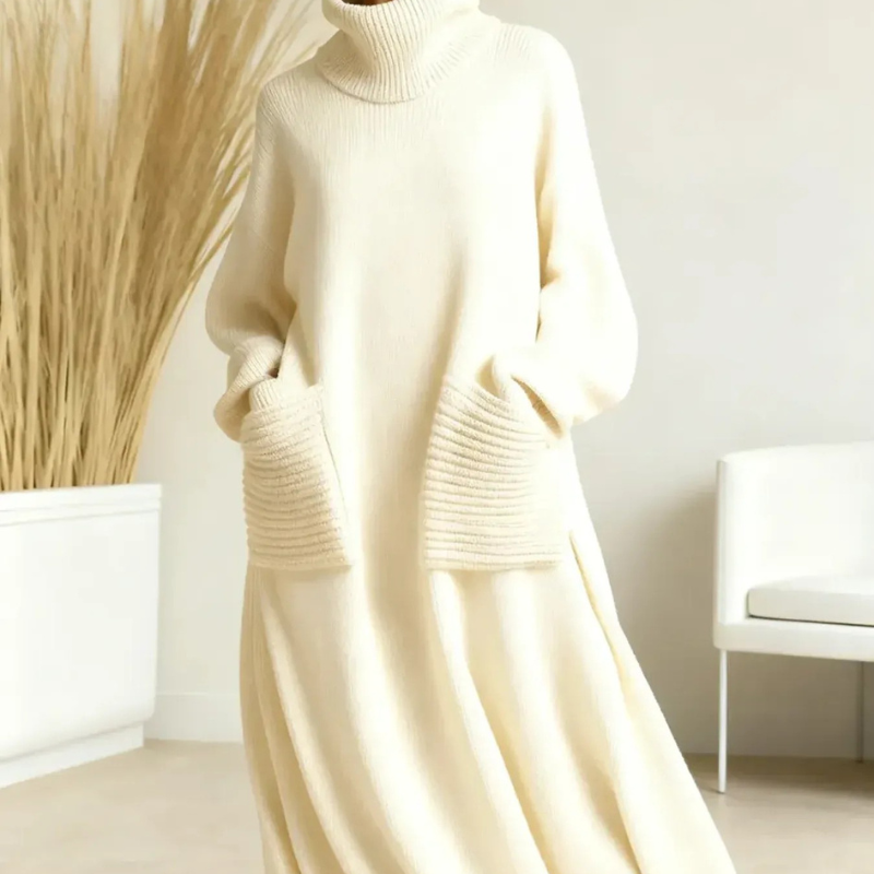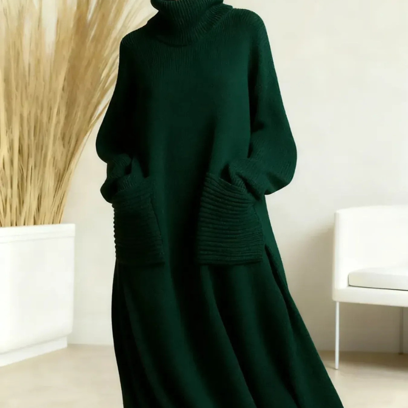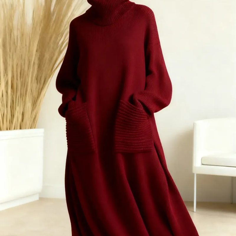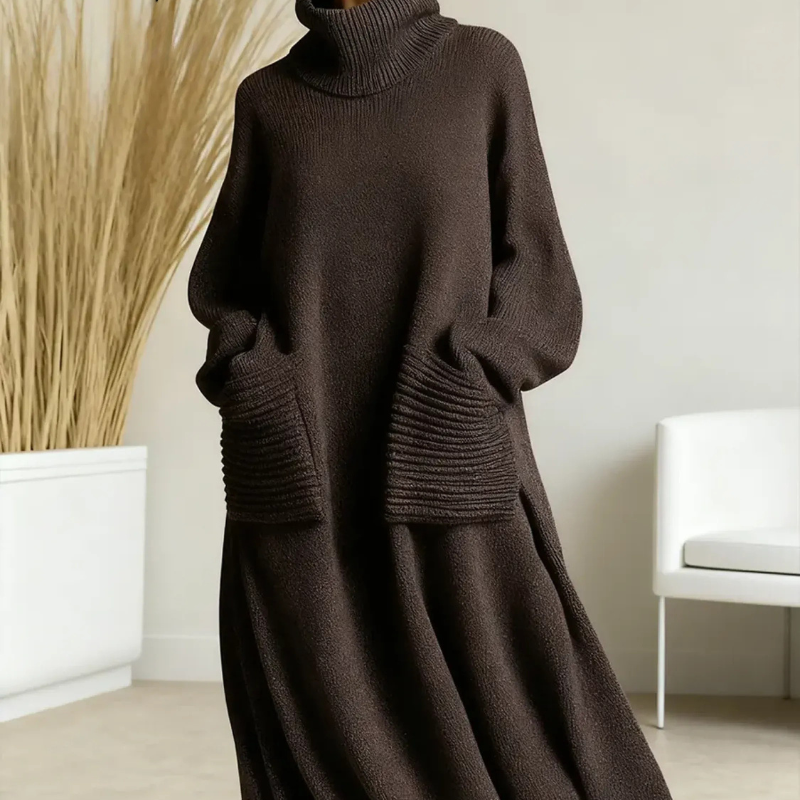 Du vill ha ett plagg som kombinerar komfort och stil. Med denna klänning får du enkel lyx, värmande komfort och en mångsidig favorit som passar hela säsongen.