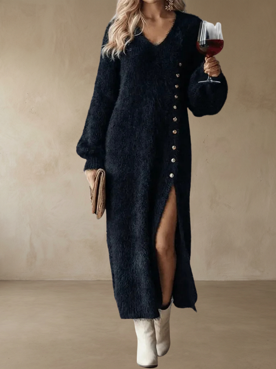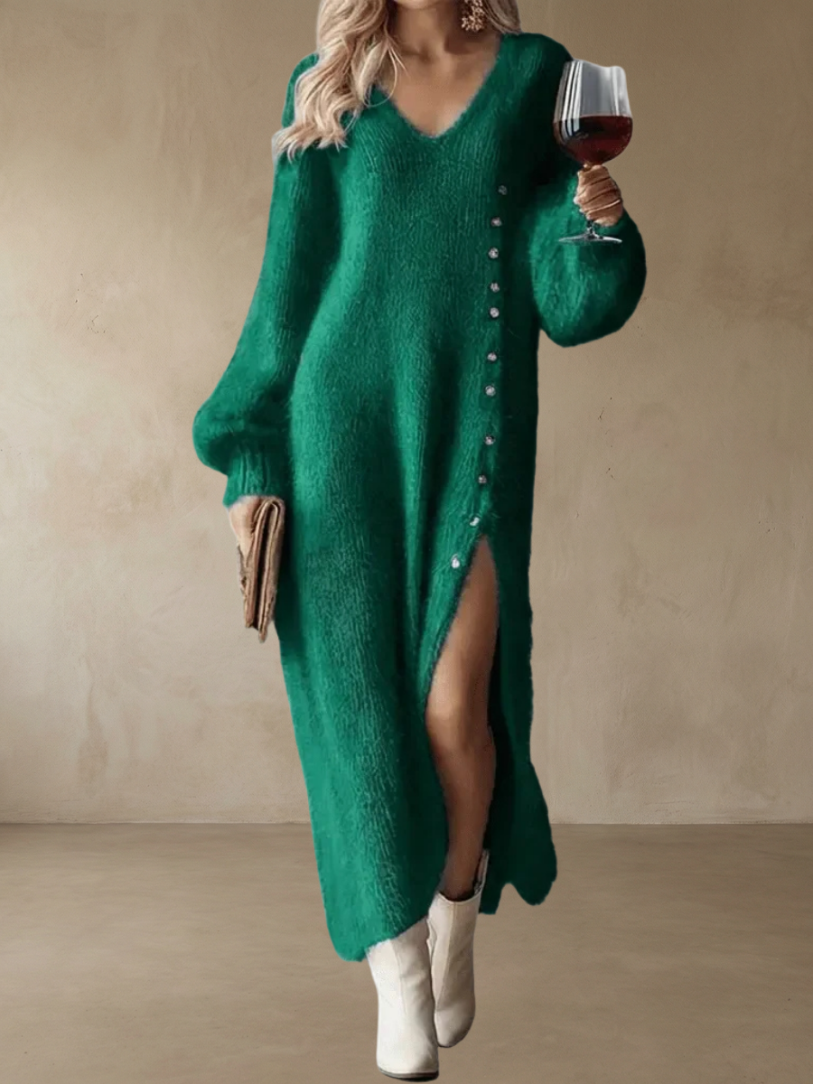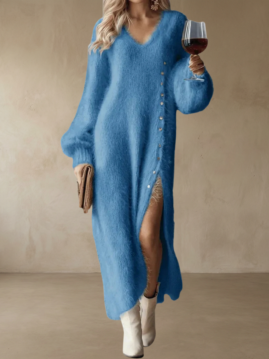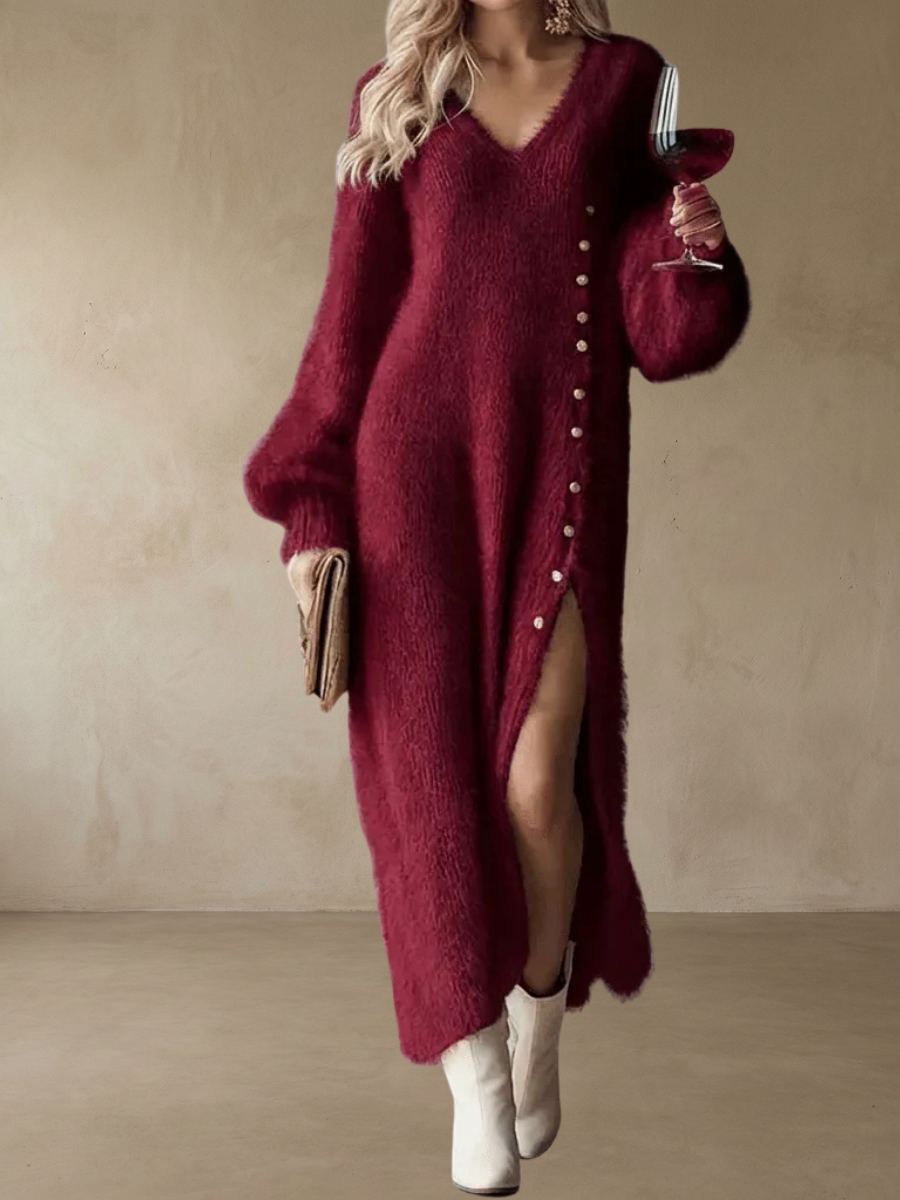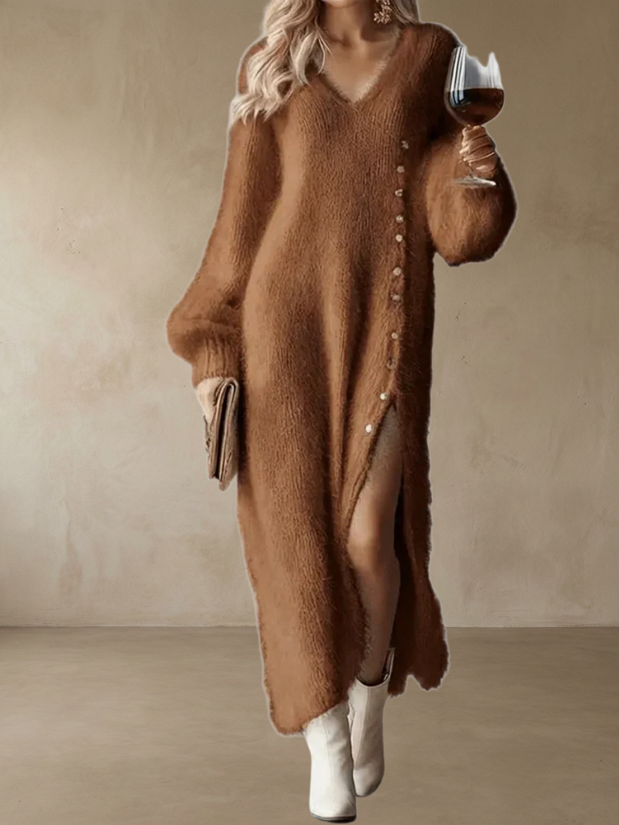 Brielle™ – Holiday Lounge Dress är skapad för allt vi älskar med högtiden — glittrande ljus, sprakande eldstäder och de där stunderna när du vill känna dig varm, självsäker och effortlessly stilfull. Den mjuka, fluffiga stickningen omsluter dig i komfort samtidigt som den ger dig en elegant och festlig look som känns helt rätt under vintern.