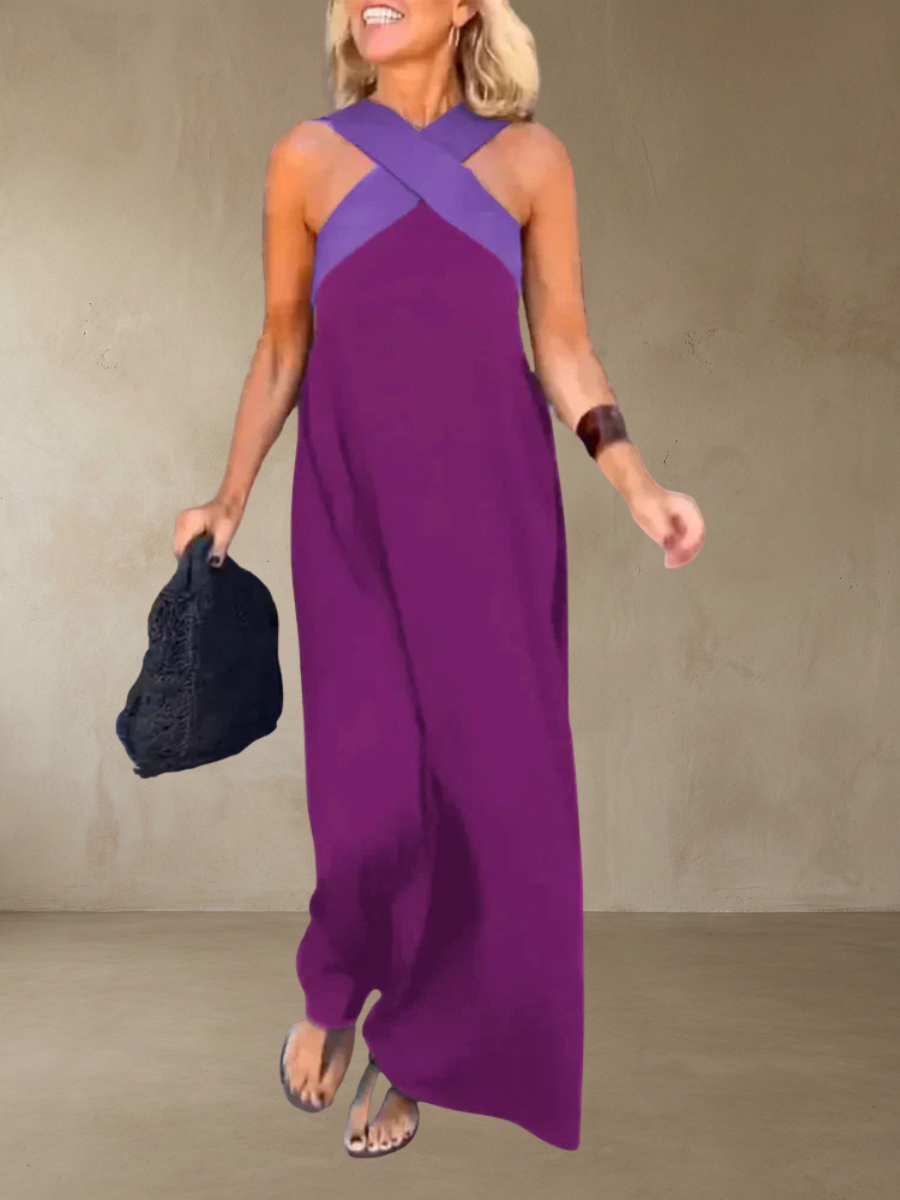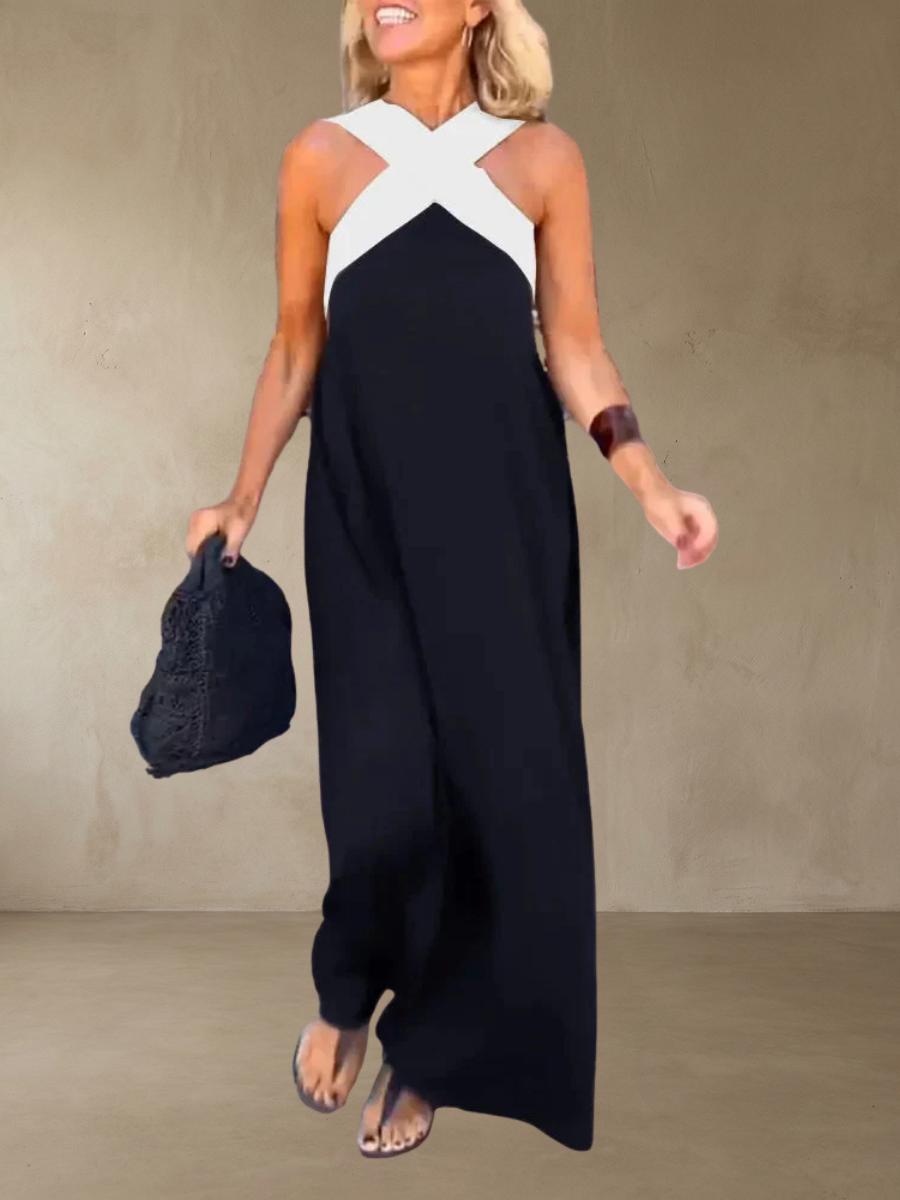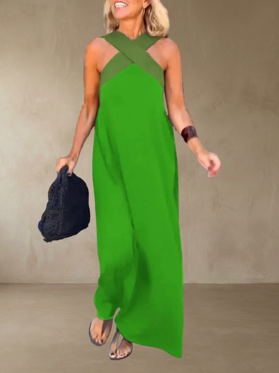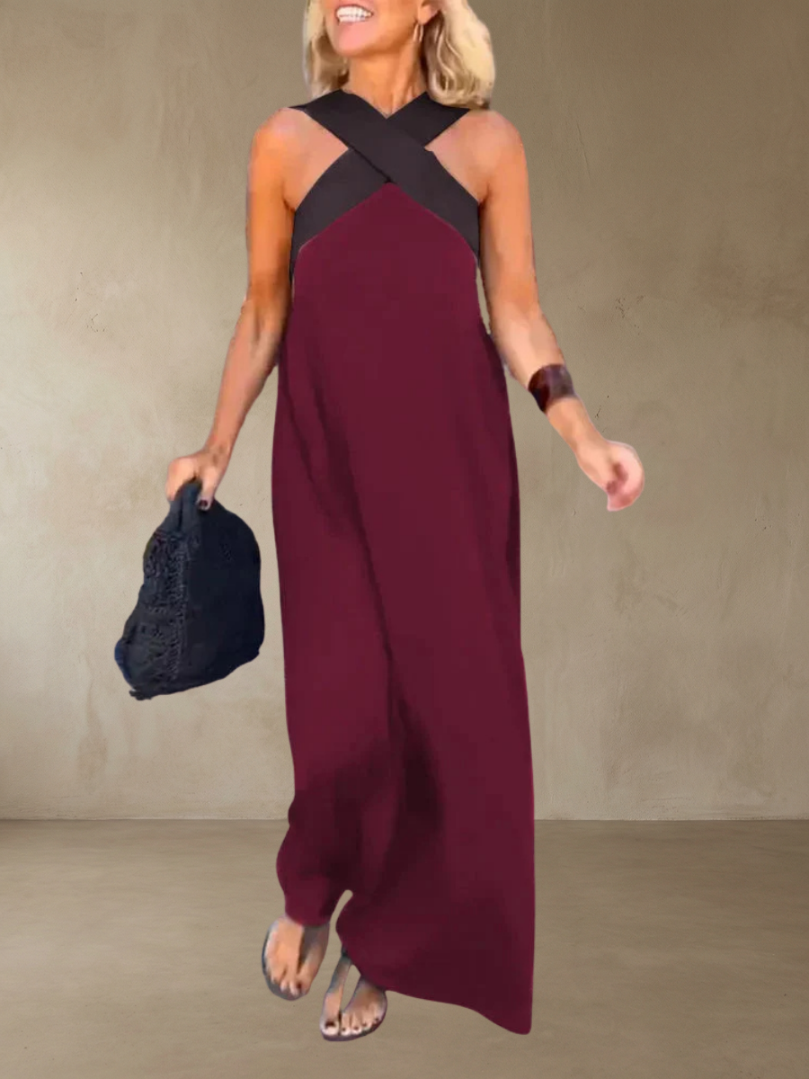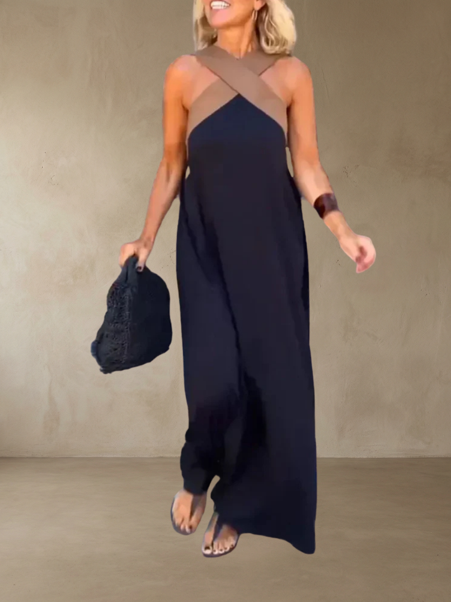 Denna maxiklänning med korsad halsringning erbjuder ett elegant fall, smickrande stöd och komfort hela dagen – perfekt för middagar, firanden eller avslappnade kvällar. Det mjuka tyget och den graciösa rörelsen framhäver din silhuett samtidigt som du känner dig avslappnad och självsäker vart du än går.